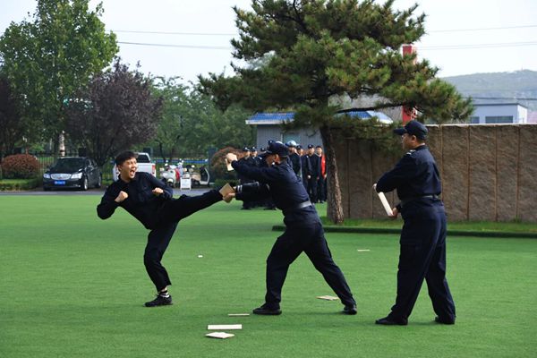 汇报演练现场,全体参训干警精神饱满、气势昂扬。队列训练中,他们步伐统一、摆臂规范,尽显纪律严明;擒敌拳展示时,出拳迅猛、踢腿沉稳,刚劲姿态里透着敢打敢拼的锐气;警情模拟处置环节,从快速响应到分工协作,从警戒布控到规范处置,展现出扎实的实战功底。省法院法警总队考核组通过现场观摩、实操检验等方式完成考核验收,对培训成效给予充分肯定。
