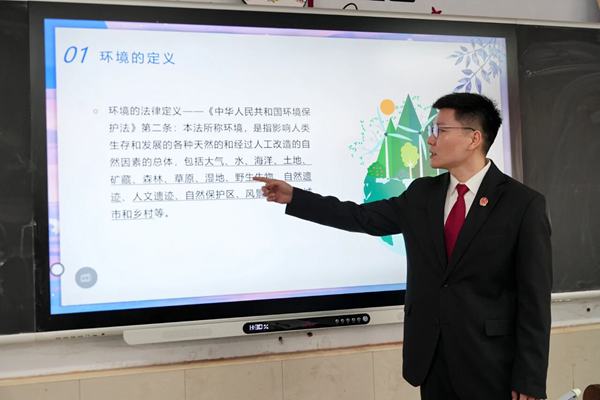 “法治阳光照未来,环保绿意满校园。”12月10日上午,焦作中院法官助理、法治副校长陈菲走进焦作市北清中学,以“环境保护与法律知识”为主题,开启“法佑青春—校园守护行动”专题普法课堂。采用法律条文解读、实景图片展示、互动问答结合等形式,培养学生环境保护意识,引导青少年迈向绿色未来。