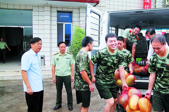 八一前夕,马村区法院为驻地消防官兵送去西瓜、鸡蛋等慰问品。